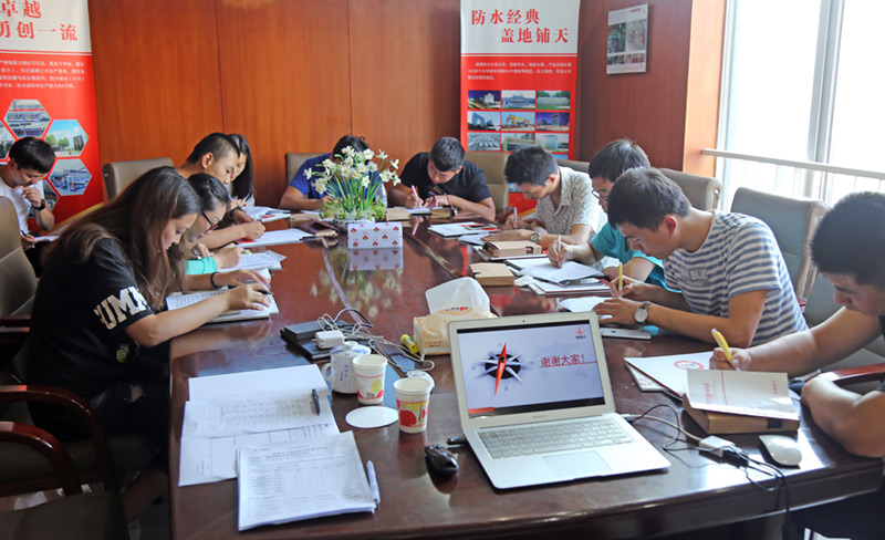 此次培訓(xùn)首先由集團(tuán)總經(jīng)理為大家進(jìn)行授課。從建筑防水行業(yè)發(fā)展開始,為新員工淺析行業(yè)發(fā)展概況及發(fā)展趨勢(shì)。與此同時(shí)還介紹了防水行業(yè)的代表性企業(yè)及行業(yè)核心競(jìng)爭(zhēng)力。讓新員工知道一個(gè)優(yōu)秀的防水企業(yè)有哪些共性,讓我們?cè)谖磥淼墓ぷ髦袨橹Γ瑠^斗。